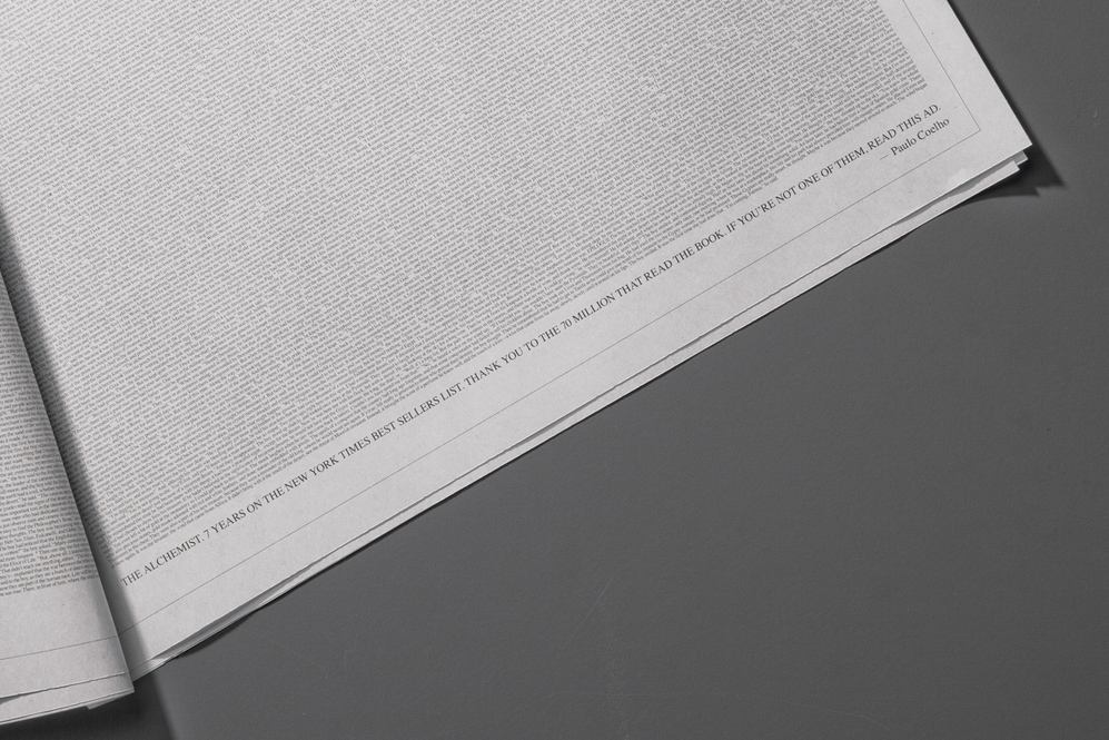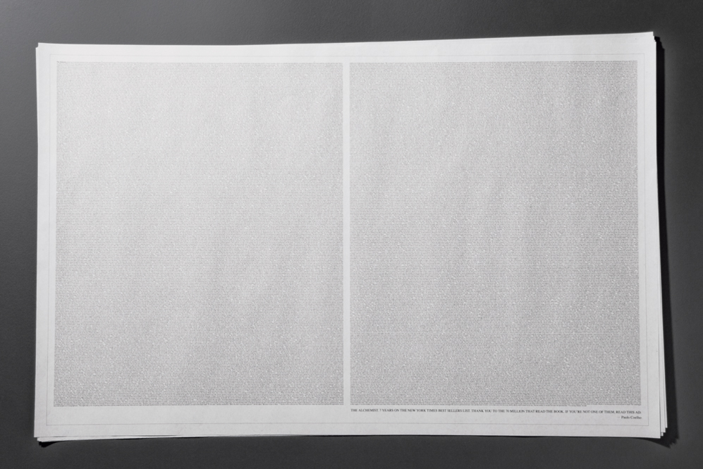 The entire text of Paulo Coelho's novel 'The Alchemist' in a single ad.
